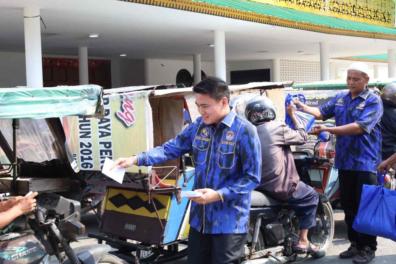 Sebanyak 250 bingkisan diberikan untuk penarik becak di Langkat. Bingkisan diserahkan jelang lebaran oleh Ketua KOMBAT Sumut, Ricky Anthony (Bung RA) bersama jajaran, Selasa (17/3/2026) di Gor Stabat.